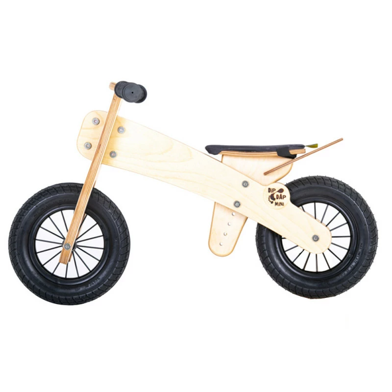 Le corps et la fourche de cette draisienne Dip Dap Mini sont en contreplaqué bouleau. Ce matériau costaud et durable bénéficie en surface d’un traitement à l’huile de lin, plus écologique qu’une application de vernis, et sans risque pour l’enfant. Superbes à l’œil, sans aspérité au toucher, les pièces de bois s’assemblent sans difficulté.