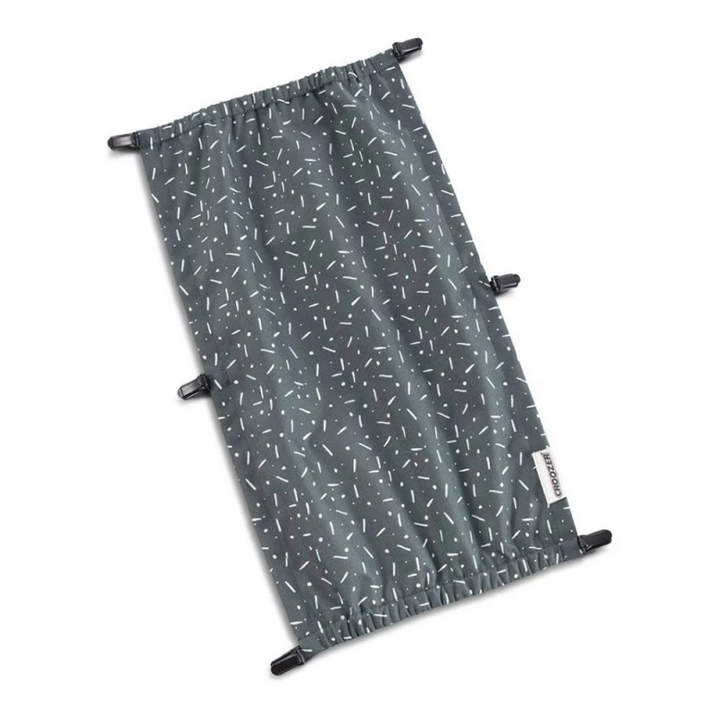 La matière utilisée assure une protection anti-UV 50+. Ce pare-soleil se met en place très facilement grâce aux 6 clips de fixation, qui permettent aussi d’ajuster la protection en hauteur.