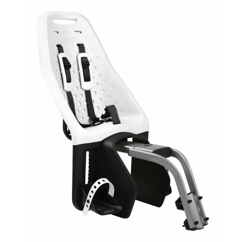 Le porte-bébé vélo arrière sur cadre Thule Yepp Maxi est un siège cosy, design, confortable et ergonomique. Conçu avec des matériaux imperméables qui se nettoient facilement, le siège a la faculté de bien absorber les chocs et les vibrations. L’enfant est bien installé et fermement maintenu par le harnais à 5 points de fixation, qui est équipé d’une fermeture avec sécurité enfant et de bretelles matelassées. Les repose-pieds réglables en hauteur sont pourvus de sangles ajustables.