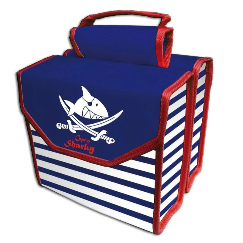 Ces sacoches “Capt’n Sharky” font très belle impression ! Elles permettent à votre petit pirate d’avoir un coffre pratique pour ranger tous les trésors trouvés en balade. Elles lui permettent d’emporter ses petites affaires, son goûter préféré, son fidèle Doudou – parce qu’un pirate aussi a le droit d’avoir un doudou (qui restera caché).