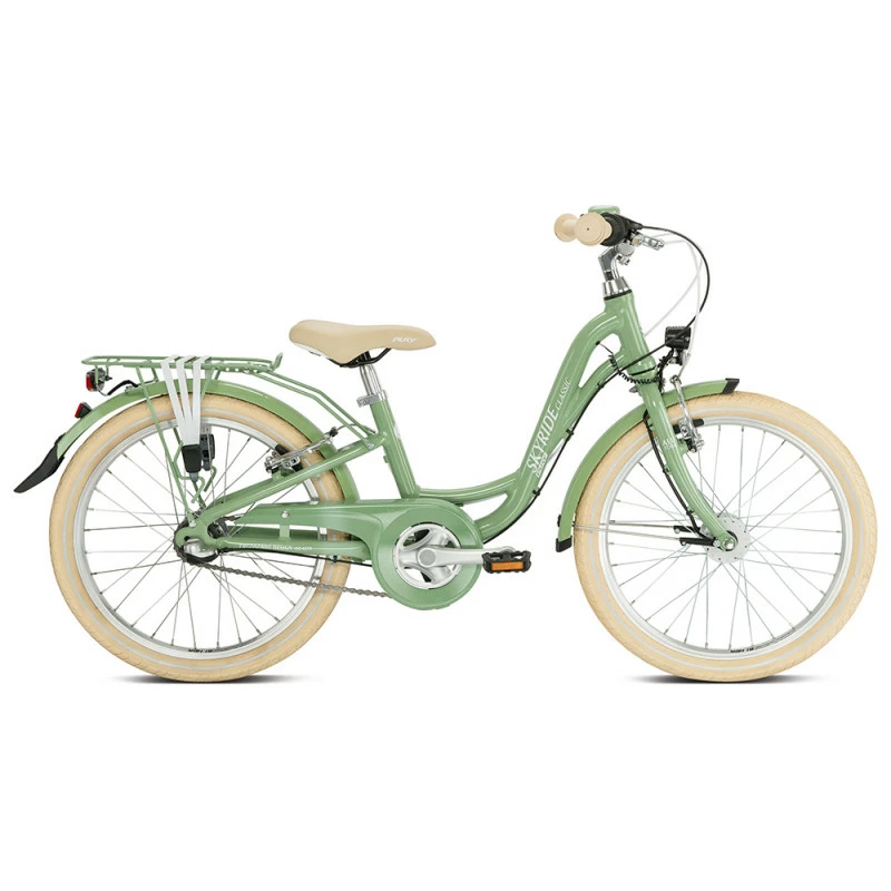 Ce vélo enfant 20″ Puky Skyride 20-3 est équipé de garde-boue, d’éclairages LED, d’un moyeu avant à dynamo, d’un moyeu arrière à vitesses intégrées (Shimano Nexus 3 vitesses) et de freins sur jante (V-Brake). Les éclairages LED branchés sur la dynamo sont très sécurisants. Le moyeu-dérailleur Shimano est une pièce robuste, fiable, qui ne demande aucun réglage. Les pneus s’usent difficilement et ont une sécurité anti-crevaison – ils présentent aussi une ligne réfléchissante sur les flancs.
