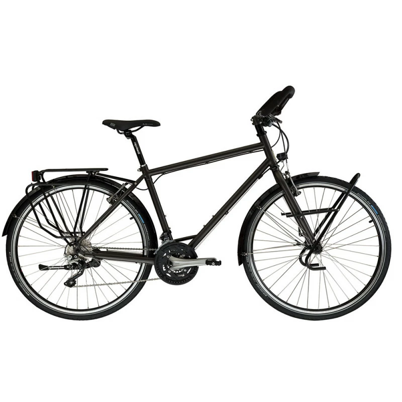 Ses porte-bagages Tubus en acier sont des accessoires largement reconnus pour la pratique du voyage à vélo. Capables de supporter 58 kg de charge (18 kg à l’avant + 40 kg à l’arrière), ils permettent d’embarquer sans problème des paires de sacoches bien remplies. D’autres accessoires sont fournis d’origine : une béquille, des garde-boue, des éclairages Spanninga – le moyeu avant à dynamo (Shutter Precision PL8) sécurise leur alimentation.