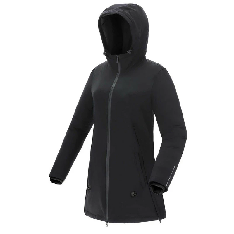 Cette veste pour femme Tucano Urbano offre une belle allure féminine, très élégante, avec une coupe 3/4 bien couvrante. Le fit regular n’est pas trop cintré, pour permettre un positionnement et un ajustement plus confortable à vélo. La capuche ergonomique passe facilement sur le casque. Elle s’ajuste aussi bien sur votre tête, à la descente du vélo – le cordon élastique à l’arrière est pratique pour la régler à la bonne taille. Au bout des manches, la membrane élastique améliore le confort, la tenue et la protection contre le vent – l’ouverture prévue permet de passer le pouce.